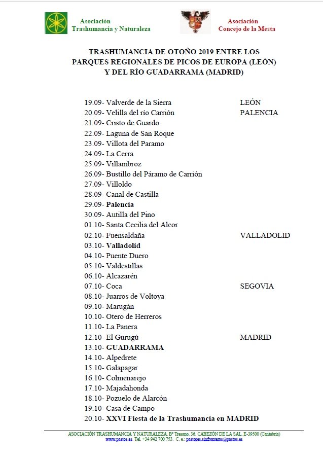 PROGRAMA PREVISTO TRASHUMANCIA EN MADRID 12-20.10. 2019